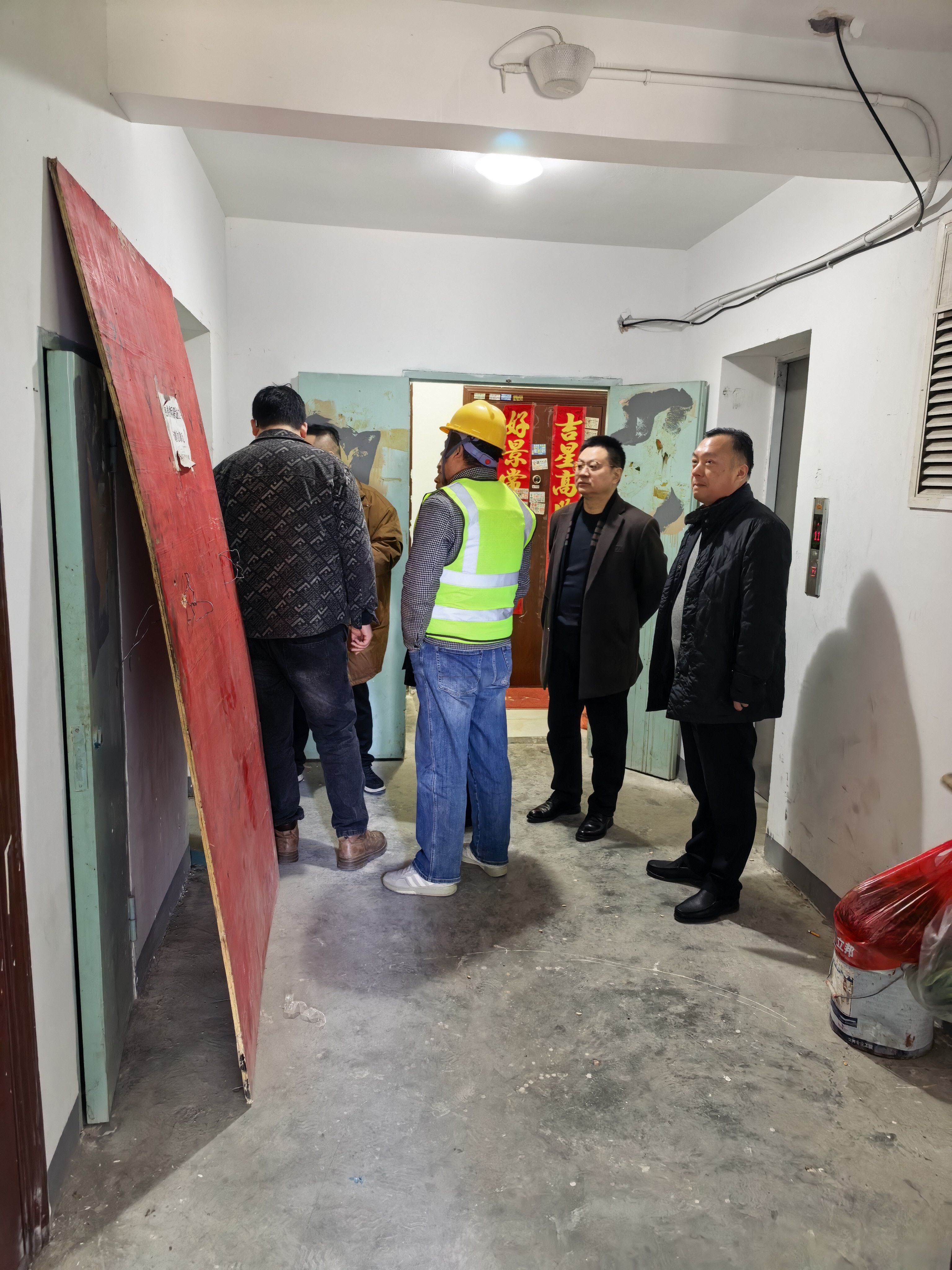 春节的脚步越来越近,万家团圆的灯火即将点亮。但对于长城电梯集团(安徽)机电工程有限公司来说,节前不是放松的时刻,而是责任更重、弦绷得更紧的关键节点。2026年2月12日,公司王康保总经理、朱友兵副总经理、顾问何先生等一行来到公司承接的合肥双凤经开区老旧小区电梯更新改造项目“凤梅家园”现场,检查电梯运行情况、安全措施落实及环境卫生整治,既是为设备“把脉问诊”,更是为节日安全“上紧发条”。